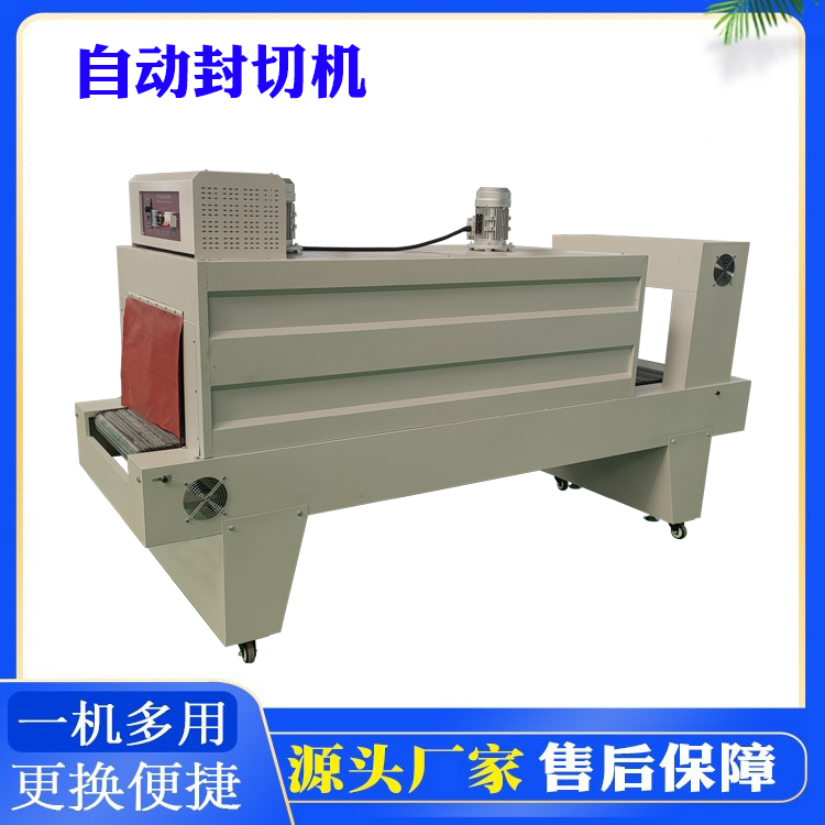 3、套膜收縮機采用恒溫側封刀,有效確保封口牢固。包裝物品長度不限制。送膜皮帶采用加寬加厚傳送帶,使用壽命長,且更換方便。